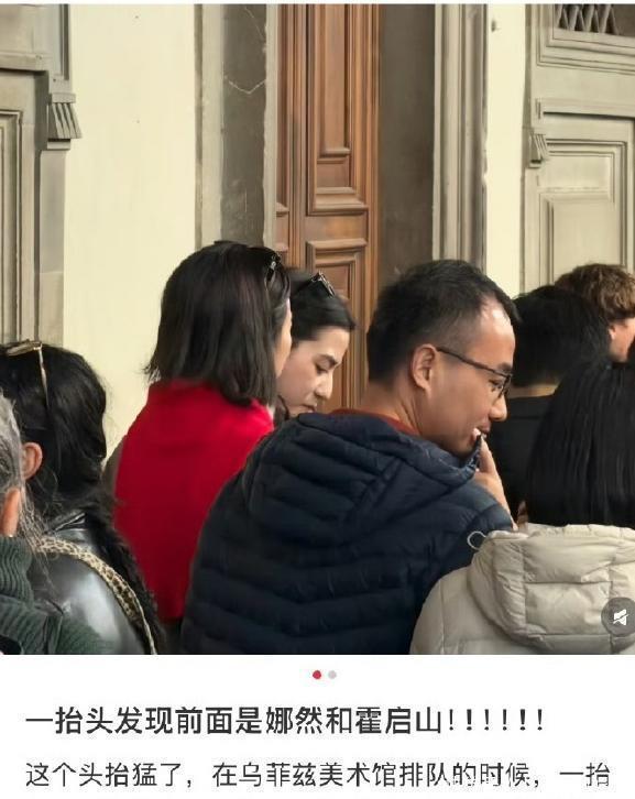 2日(正月初二),网友在佛罗伦萨乌菲兹美术馆偶遇娜然与霍启山,两人身穿同色系外套,霍启山主动帮娜然背包,互动自然。霍震霆(霍启山父亲)、霍启仁(弟弟)及其泰籍妻子均在场,一行人集体行动。娜然与霍启仁妻子热聊,氛围融洽。此次,娜然跟霍家的同游,衔接霍震霆在米兰的八十大寿家族聚会,被视为她“准儿媳”身份获家族认可的标志。